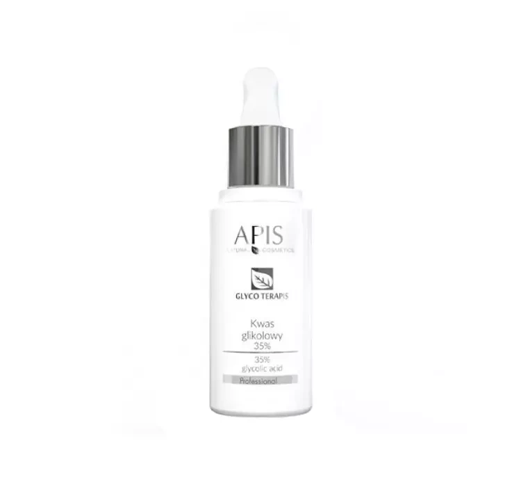 Apis Glyco Terapis Glycolic acid 35% is intended for professional use. It was created for the exfoliation of mature, oily, seborrhoeic skin, with discoloration, acne, blackheads, papules and acne scars. Glycolic acid brightens discolorations, evens out the color, normalizes and reduces the work of sebaceous glands. Chemical peel will keep the skin moisturized and wrinkles will be less visible. The product stimulates the regenerative processes of the dermis and supports its renewal. Additionally, it exfoliates calloused epidermis and smoothes acne scars. After using it, your complexion will be radiant and full of vitality.