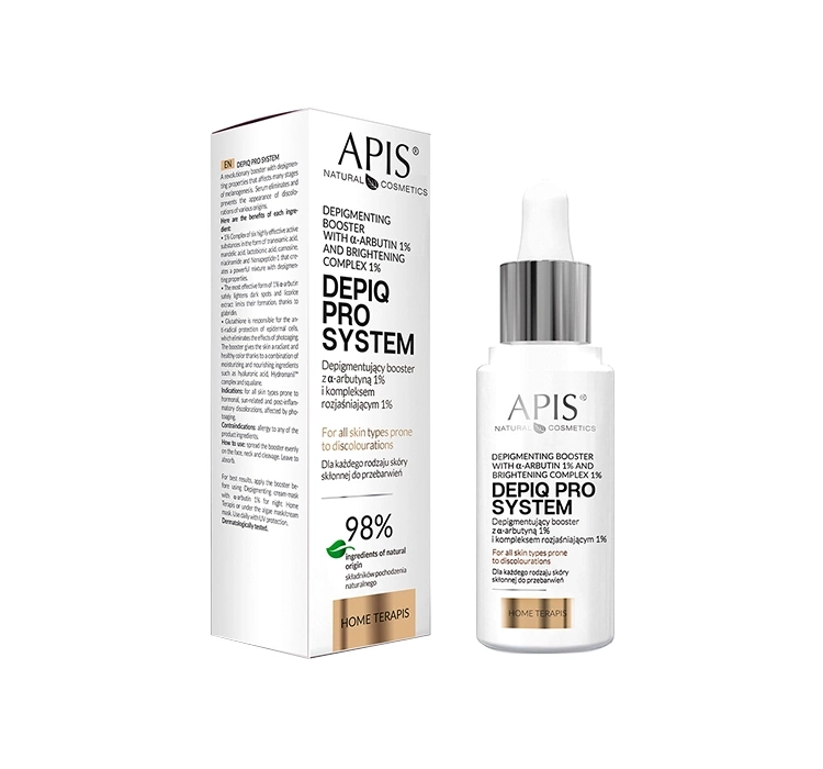 Apis Professional Depiq Pro System is a unique series of cosmetics specially developed for skin struggling with troublesome hyperpigmentation. Their formulas are based on an excellent combination of active ingredients that demonstrate strong brightening effects. The range includes a rich selection of products such as ampoules, peeling, booster, and face cream-mask, allowing you to provide your skin with comprehensive care.