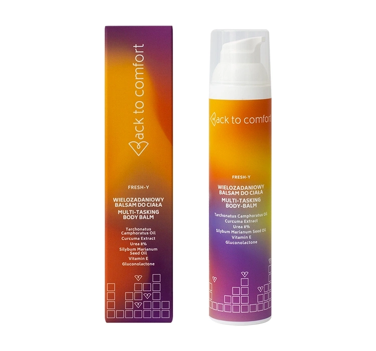according to the information on the packagingBack To Comfort FRESH-Y multi-tasking body balm is an extremely effective cosmetic that will be an excellent choice for those who struggle with troublesome acne, blackheads, erythema and redness. This innovative formula bases its action on a precious combination of turmeric extract, urea, triethyl citrate, immortelle extract, milk thistle and camophor tree oil, which visibly improve its appearance and condition.