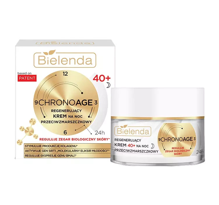 Bielenda CHRONO AGE 24H Anti-Wrinkle Night Face Cream 40+ activates the SIRT1 longevity gene, allowing the skin to keep its youthful look for longer.