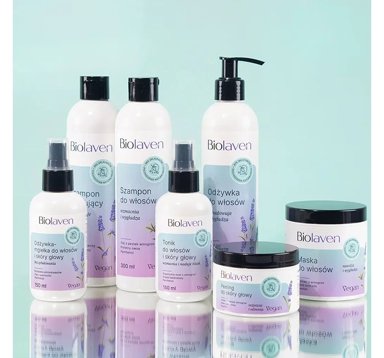 The conditioner contains lavender essential oil, which refreshes and strengthens the hair. Its composition also includes a complex of ingredients that protect the strands against moisture loss and strengthen them - grape seed oil, avocado butter and xylitol. Additionally, alginate has a smoothing effect and panthenol has a regenerating effect.