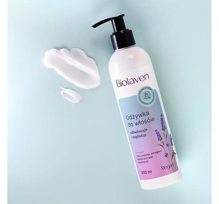 Biolaven Rebuilding and Smoothing Hair Conditioner was created for the care of all types of hair. Its formula is based on 97% ingredients of natural origin, so it can be used even after each washing. Additionally, the cosmetic is fully vegan and comes in recyclable packaging.