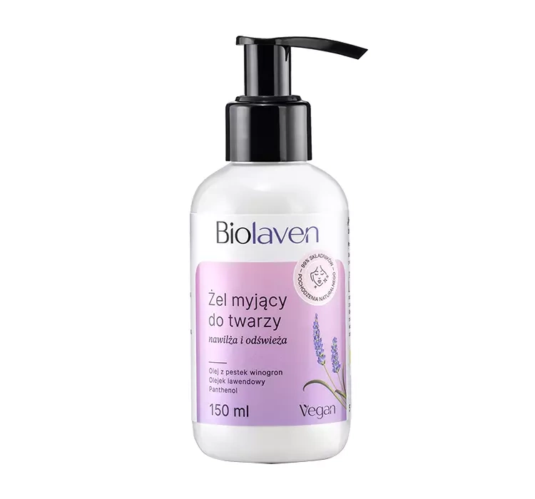 Biolaven Organic face wash gel has refreshing and moisturizing properties and is enriched with lavender essential oil and grape seed oil. Recommended for all skin types. It gently but effectively cleanses the skin of all impurities, maintaining the optimal pH and not affecting the skin's hydrolipidic barrier.The gel has a refreshing, antiseptic and moisturizing effect. After cleansing with the gel, the skin will be soft and smooth and irritation will be soothed. The product is dermatologically tested and has a hypoallergenic formula.