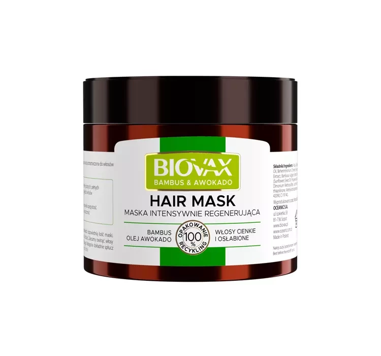 Biovax Bambus and Avocado Oil is a series of cosmetics that provides volume and thickening to weakened hair. The mask smoothes, gives volume, moisturizes and reduces hair loss. The composition includes bamboo shoots extract (vitamin bomb), which strengthens and thickens the hair fibers, making it resistant to damage. Biovax Bambus and Avocado Oil oxygenates the hair roots and stimulates its growth. Avocado oil contains valuable Omega-3 acids, which replenish the hair's lipid barrier, nourish and prevent split ends.