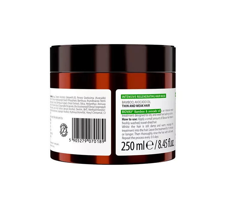 BIOVAX BAMBOO & AVOCADO OIL INTENSIVELY REGENERATING HAIR MASK 250ML