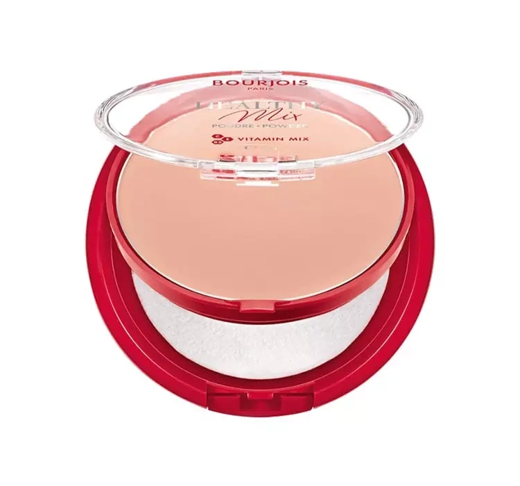 Bourjois powder is closed in a compact package with a sponge and a mirror. Healthy Mix powder is available in several colors matching different complexions and skin tones.