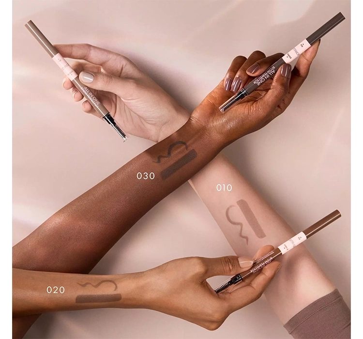 Shape and fill in the eyebrows and then comb the hairs with the included brush to obtain a natural effect.