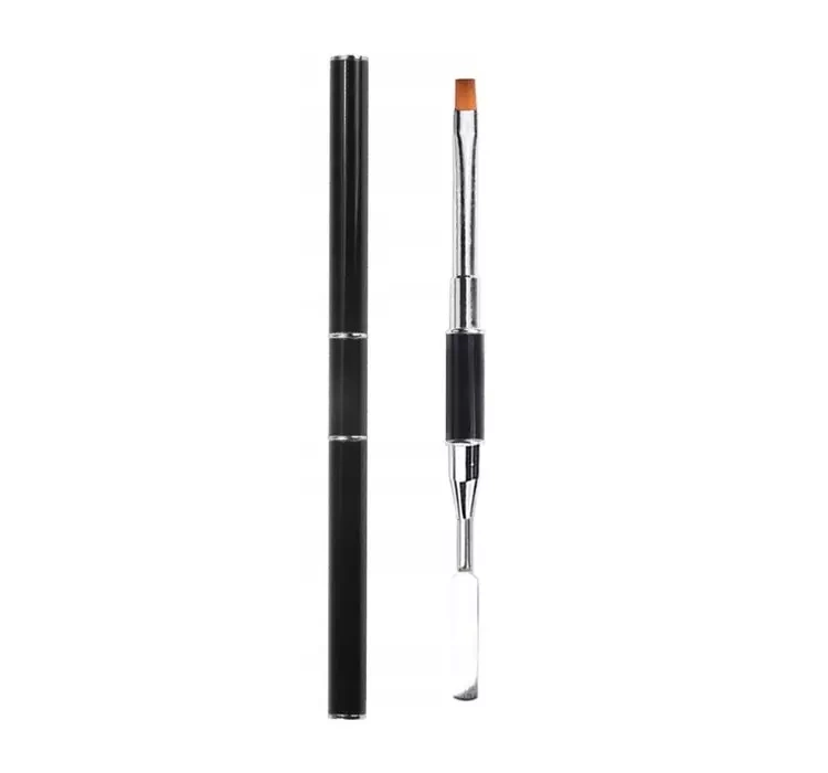This 2-in-1 double-ended nail accessory is a brush and pusher. The bristle tip is used for nail art, while the metal tip is used for the cuticle.