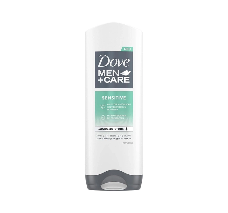 use within 12 months of openingDove Men + Care Sensitive shower gel contains MicroMoisture which not only effectively cleans the skin of all impurities, but also deeply moisturizes, nourishes and visibly improves its overall condition. The gel protects the skin against excessive drying and irritation, ensuring smoothness and softness. It leaves a wonderful feeling of freshness and comfort.