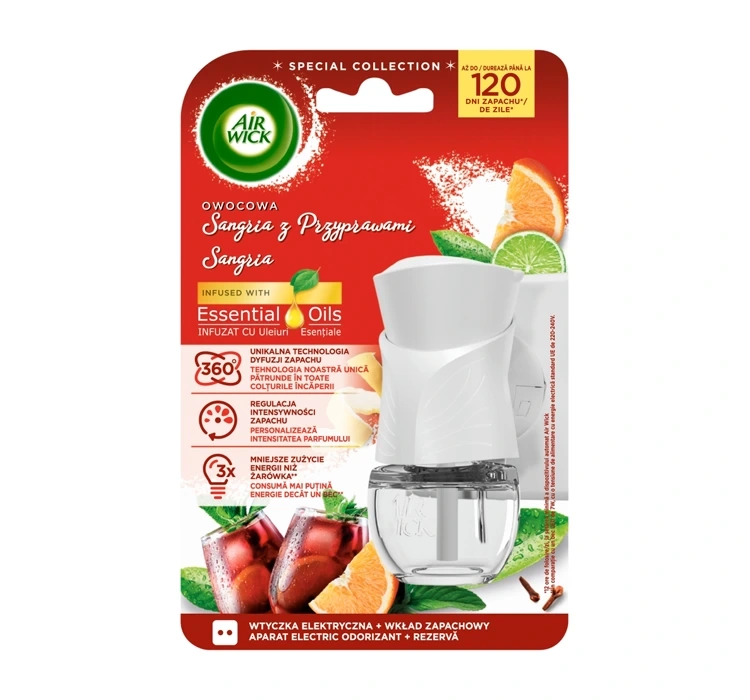 Air Wick Electric Air Freshener + Refill set is a functional and stylish solution that will introduce a long-lasting, pleasant scent to your home.