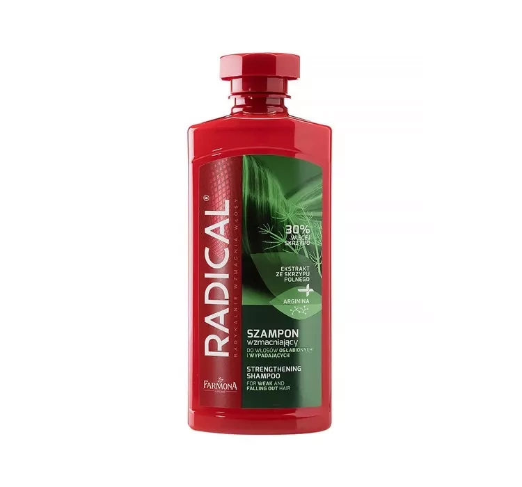 Farmona strengthening shampoo for weakened and falling out hair with common horsetail extract effectively reduces hair loss. The formula is rich in nourishing active ingredients such as arginine, which stimulates hair bulbs and provitamin B5 to moisturize and regenerate the hair.