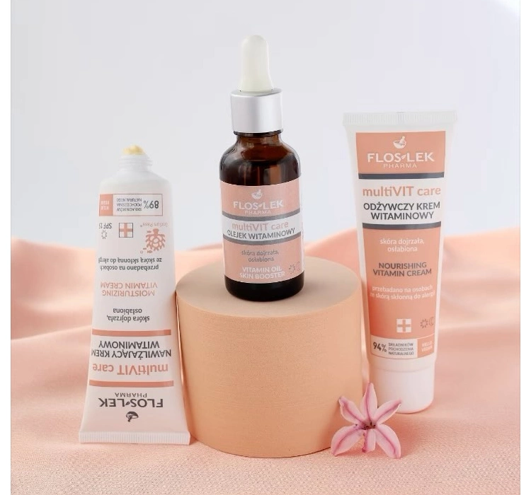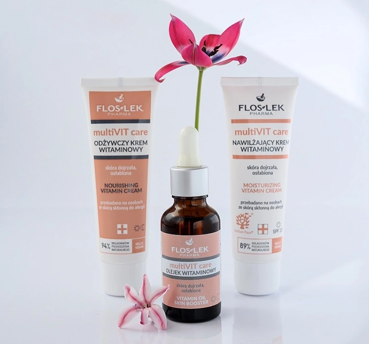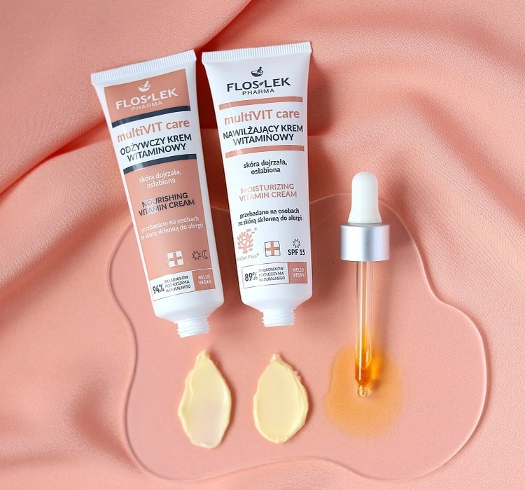 Floslek ADEK Care Nourishing Vitamin Cream makes the skin look healthy and rested.