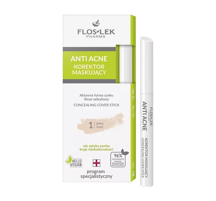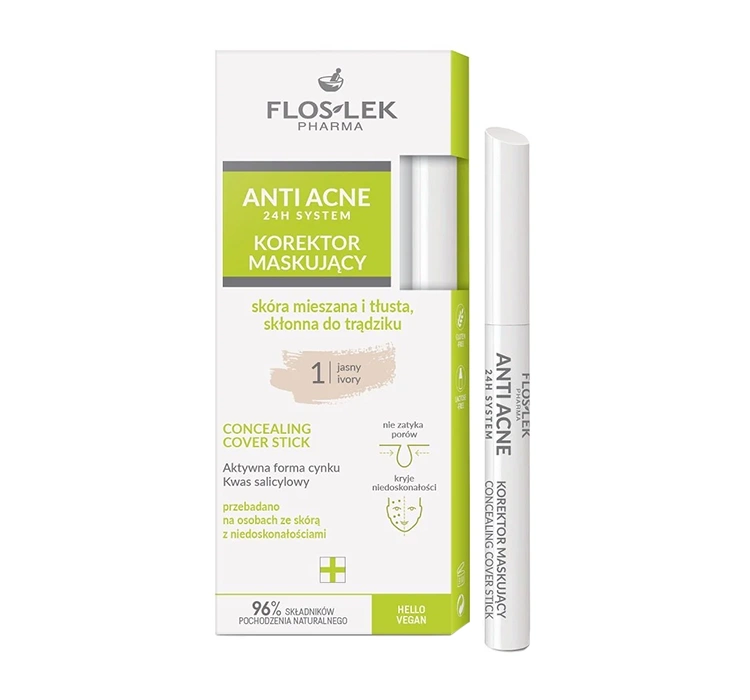 Flos-lek face concealer stick is an antibacterial cosmetic designed for oily, combination and acne skin.