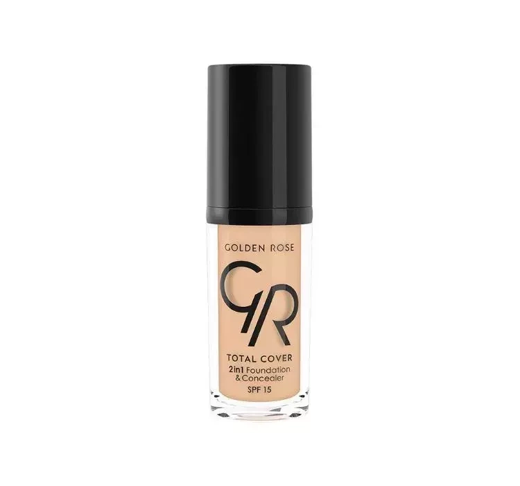 Golden Rose Total Cover 2in1 foundation and concealer contains vitamin E antioxidant and SPF that protects against the harmful effects of sunlight.