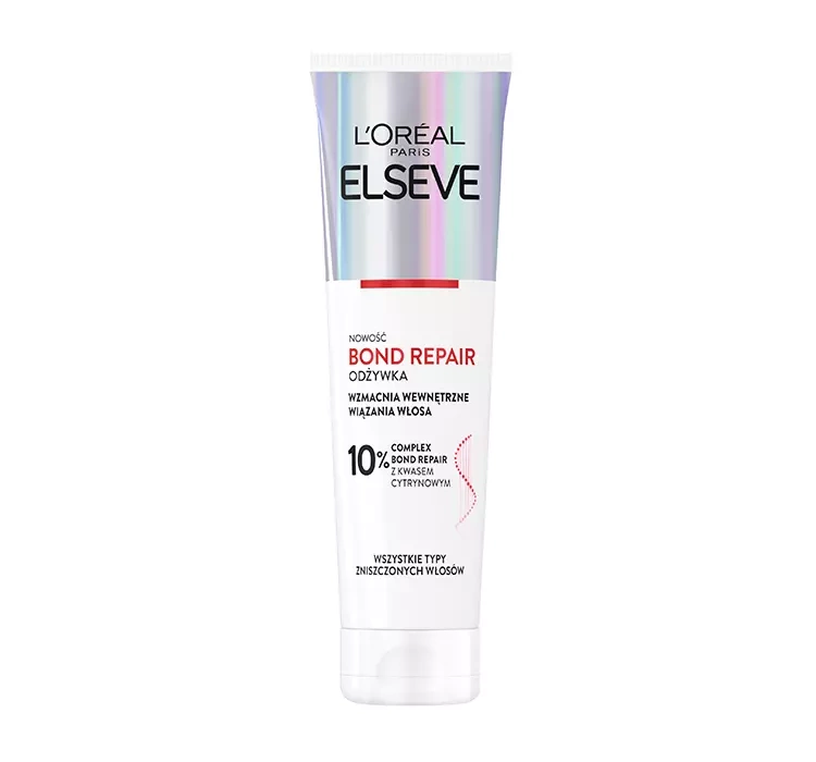 Loreal Paris Elseve Bond Repair Conditioner is the 3rd step in a comprehensive reconstructive treatment, which visibly rebuilds the structure of strands damaged by lightening, dyeing or excessive exposure to UV radiation. Stronger bonds of hair with supplemented keratin contribute to improving the shape and elasticity of the hairstyle.