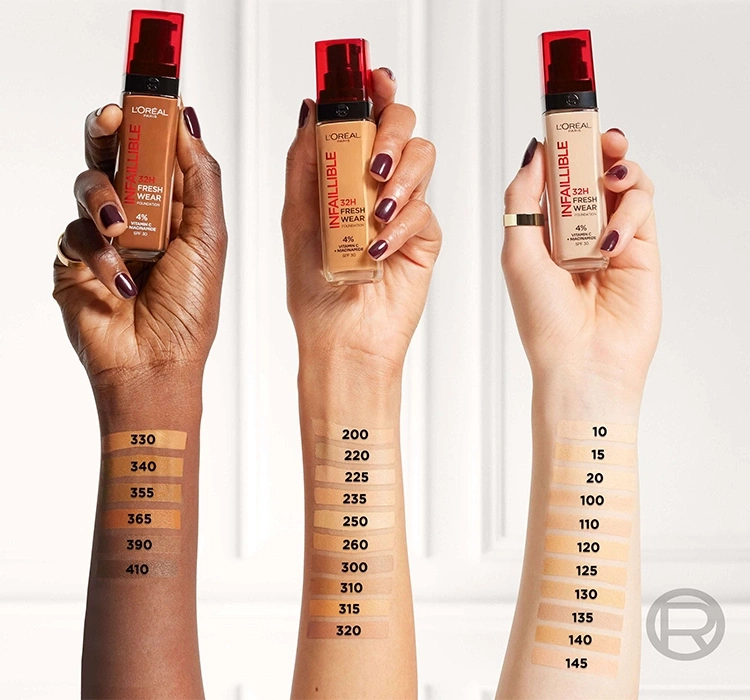 • Infaillible 32H Fresh Wear foundation contains vitamin C with antioxidant and brightening properties for a subtle glow and fresh look.
