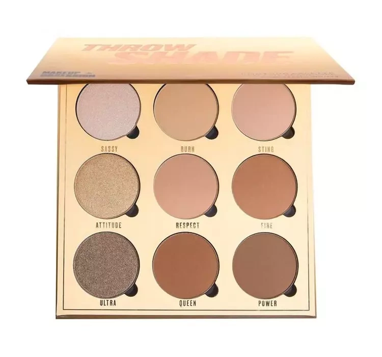 Makeup Obsession Throw Shade Contour Palette contains highlighters and bronzers in various shades and finishes.