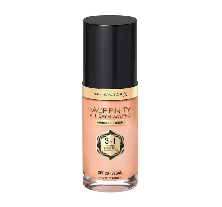 MAX FACTOR FACEFINITY ALL DAY FLAWLESS 3IN1 VEGAN FOUNDATION N77 SOFT HONEY 30ML