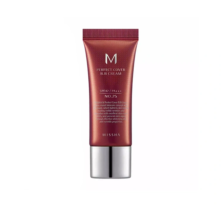 M Perfect Cover BB Cream is a long-lasting and perfectly covering beauty balm. BB cream reduces wrinkles, evens out the skin colour and protects against harmful radiation. This world bestseller will work for all skin types. M Perfect Cover effectively covers all discoloration and imperfections, making the skin look flawless and regaining a healthy and radiant appearance. Has a moisturizing and anti-wrinkle effect. Moreover, it effectively protects against solar radiation. BB Missha cream formula, based on plant ingredients, contains, among others, chamomile and rosemary extracts, ceramides and hyaluronic acid. Chamomile extract has an anti-inflammatory and soothing effect on irritated skin. Rosemary extract has antioxidant and antimycotic properties, and additionally prevents the formation of new wrinkles. Ceramides ensure the optimal level of skin hydration, and hyaluronic acid moisturizes and restores its elasticity. The multifunctional BB M Perfect Cover Cream is not only a makeup cosmetic. The cream has a nourishing effect on the skin, improving its condition. Its light-weight formula blends easily into the skin without giving a mask-like effect. BB Missha cream comes in a wide range of colors and has a high SPF42 / PA +++.