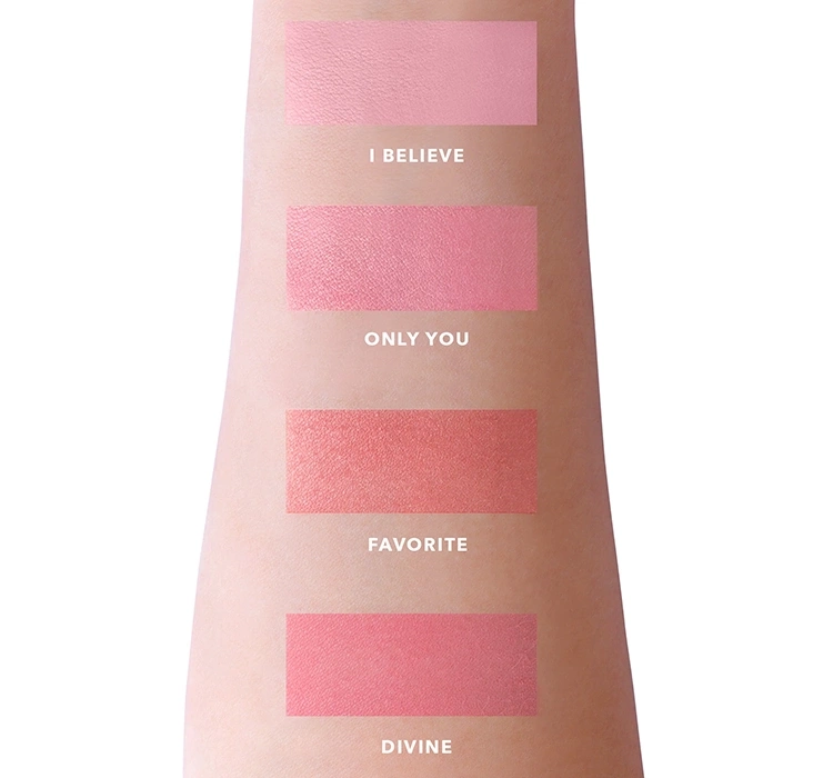 Apply to the face. The palette includes blush and highlighter that can also be used as eyeshadows.
