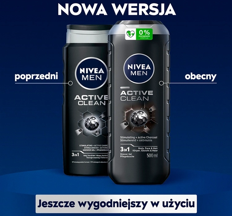 Experience the refreshing power of NIVEA MEN Active Clean shower gel for body, face and hair