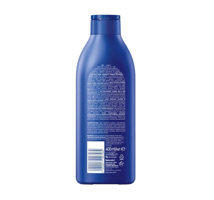 NIVEA® Nourishing Body Milk for Very Dry Skin is enriched with a DEEPLY MOISTURIZING SERUM