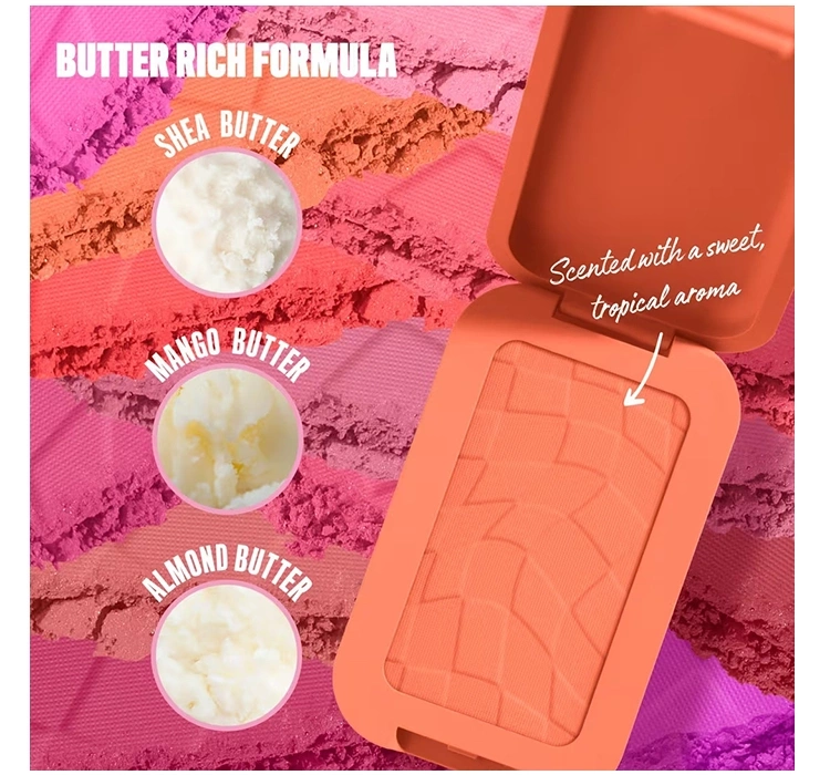 You can build the color intensity by adding more blush from the Buttermelt series. For a unique effect, try combining your two favorite Buttermelt Blush shades. Travel-friendly size.