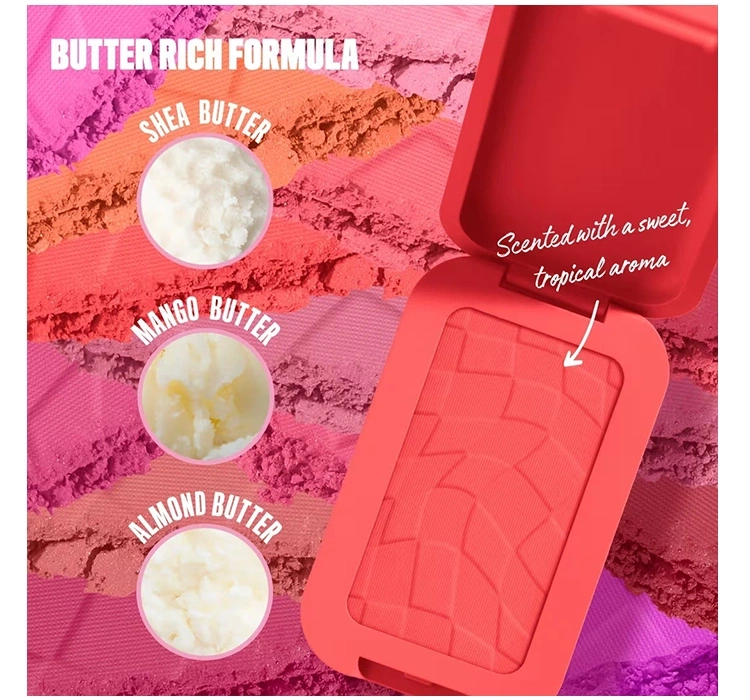 You can build the color intensity by adding more blush from the Buttermelt series. For a unique effect, try combining your two favorite Buttermelt Blush shades. Travel-friendly size.