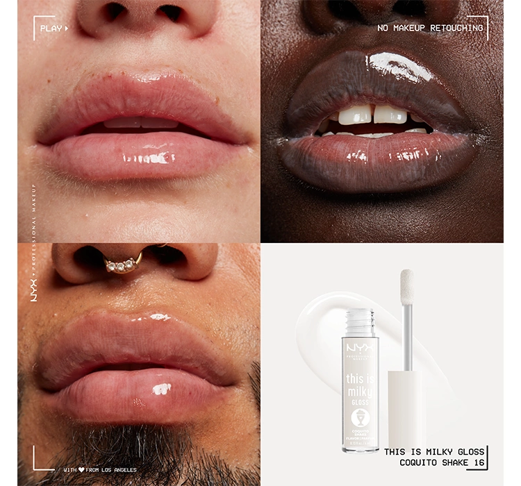 NYX Professional MakeUp This Is Milky is a lip gloss with a unique milky texture that provides 12-hour hydration, ultra-glassy shine and subtle color.