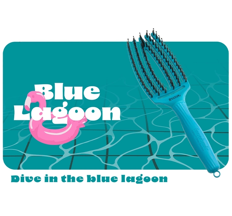 Hit the road with Olivia Garden On the Road Again, the latest collection that captures the living essence of the 1970s. This limited edition is inspired by the colorful 1970s, its stunning design and the atmosphere of that decade. Szczotka FingerBrush w kolorze Blue Lagoon wyróżnia się niebiesko-zielonym odcieniem, przypominającym morską lagunę.