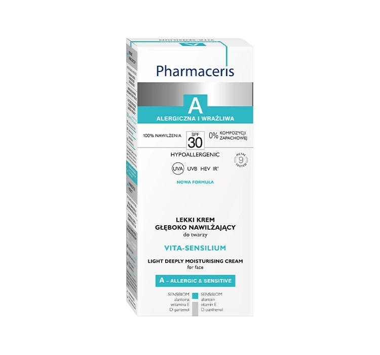 Pharmaceris A is a range of dermocosmetics dedicated to allergic and sensitive skin that requires specialist care, free from typical allergens and irritants. The Pharmaceris A series is devoid of dyes and fragrances which are the most common cause of allergic reactions. These dermocosmetics also have a soothing and moisturizing effect, while improving the condition of allergic skin. Pharmaceris A Vita-Sensilium is a light-weight and deeply moisturizing cream recommended for daily care of allergy-prone, hypersensitive, dry and dehydrated skin. Vita-Sensilium cream has a light formula that deeply and long-lastingly moisturizes, nourishes, firms and smoothes. In addition, it soothes irritation and burning sensation, while preventing dryness, redness and itching.