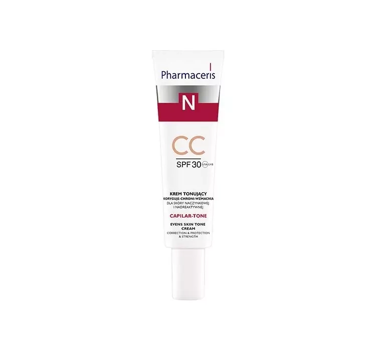 Pharmaceris N Capilar-Tone CC cream was created for sensitive skin of all types, especially couperose, hyper-reactive and skin with rosacea. The CC cream has a lightweight formula with green mineral pigment for effective redness correction, even skin tone and reduced visibility of capillaries. In addition, the cosmetic moisturizes, regenerates and provides high sun protection.