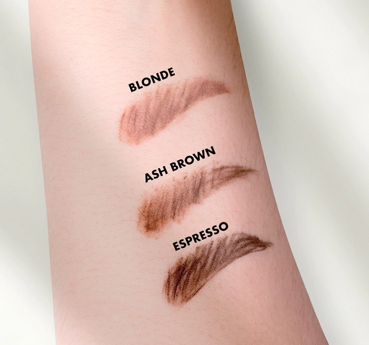 Apply in short strokes to fill eyebrows and comb them with a spoolie.
