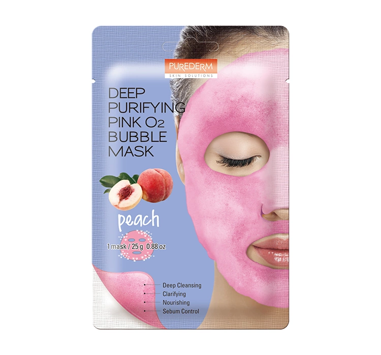 Purederm Deep Purifying Pink O2 Bubble Mask Peach will make your skin clean and radiant. The peach extracts contained in the mask have a moisturizing and nourishing effect, and the bubble technology helps in deeper cleansing of pores. The mask is ideal for tired, gray skin and for people struggling with excess sebum.