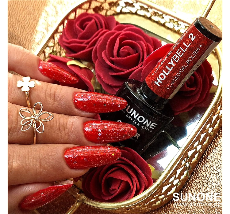 use within 24 months of opening There may be differences in the graphic design on the packaging SunOne Hollybell is a line of hybrid nail polishes that will be a perfect way to add a bit of Christmas magic to your nail styling. Each color from this collection is unique - you will find deep green, symbolizing Christmas tree branches, intense reds and golden shades, reminiscent of twinkling Christmas tree lights.