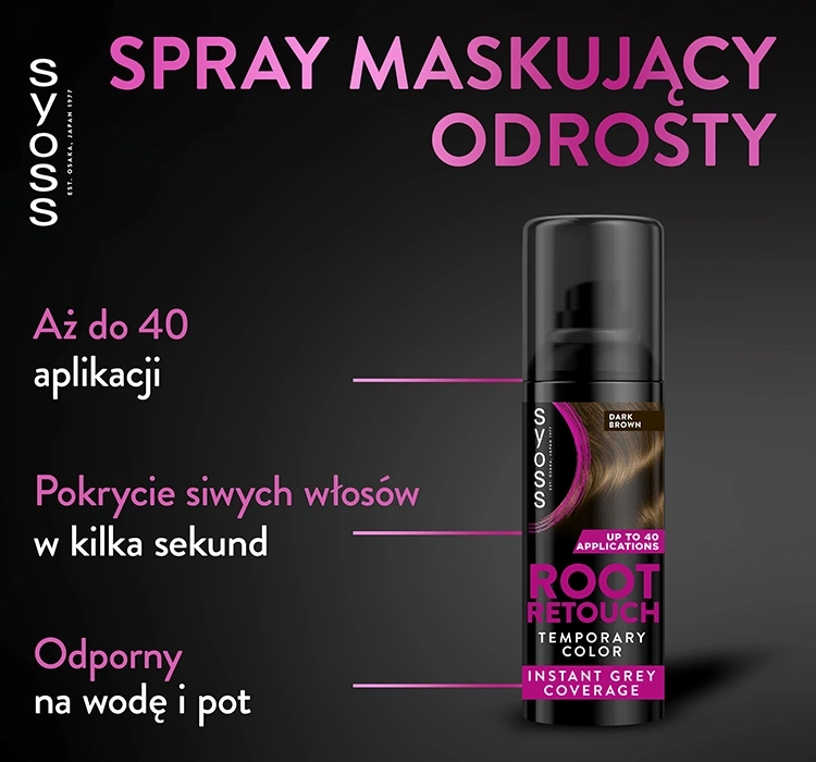 Syoss Root Retoucher is a temporary spray that camouflages gray and bright regrowth in seconds!