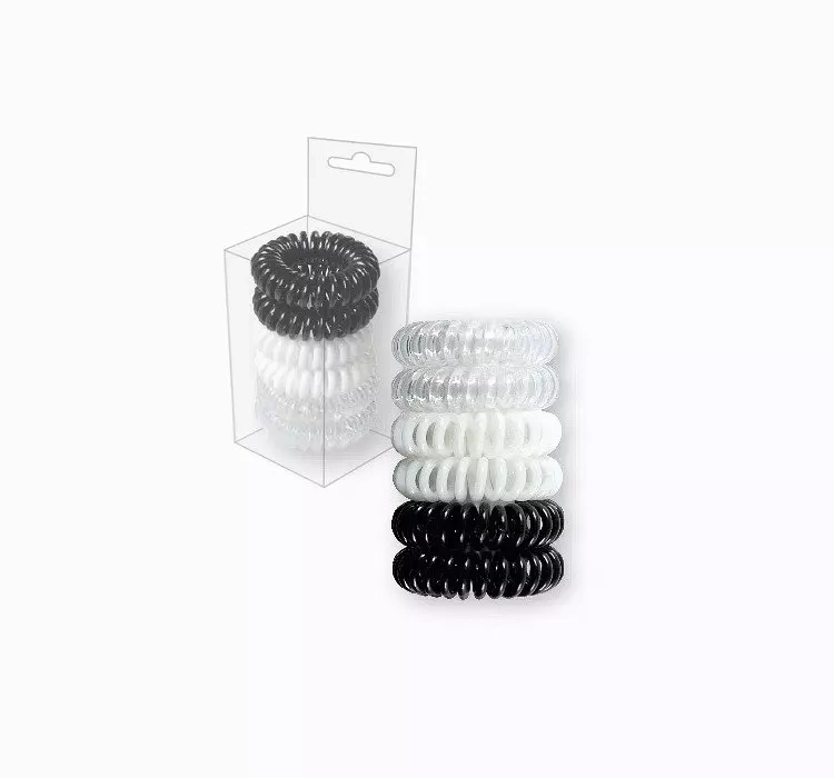The set includes hair ties in 3 different colors: black, white and transparent.