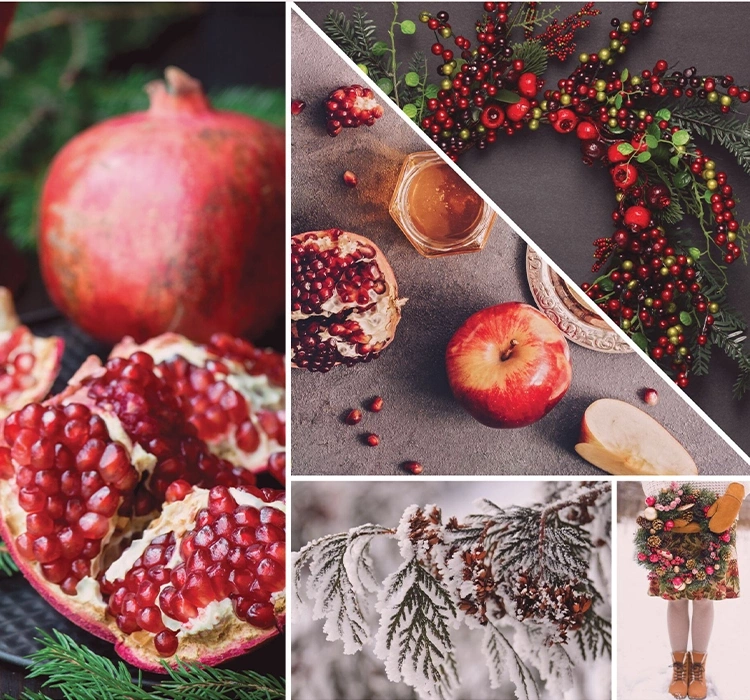 apple, pomegranate, pineapple, blueberries