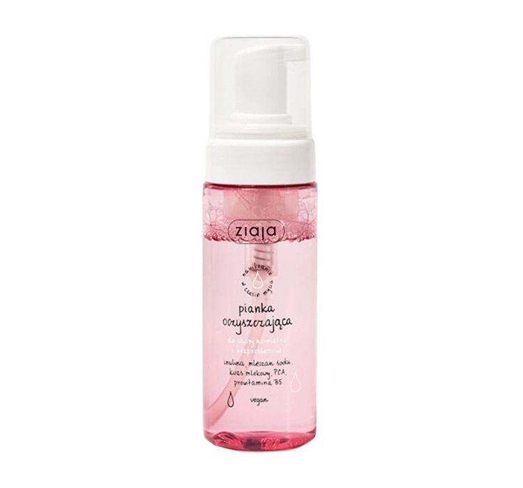 Ziaja cleansing foam was created for the delicate care of normal skin, combining the effectiveness of cleansing with hydration. Enriched with concentrated lactates, inulin, provitamin B5 and soothing extract, it protects and nourishes the skin.
